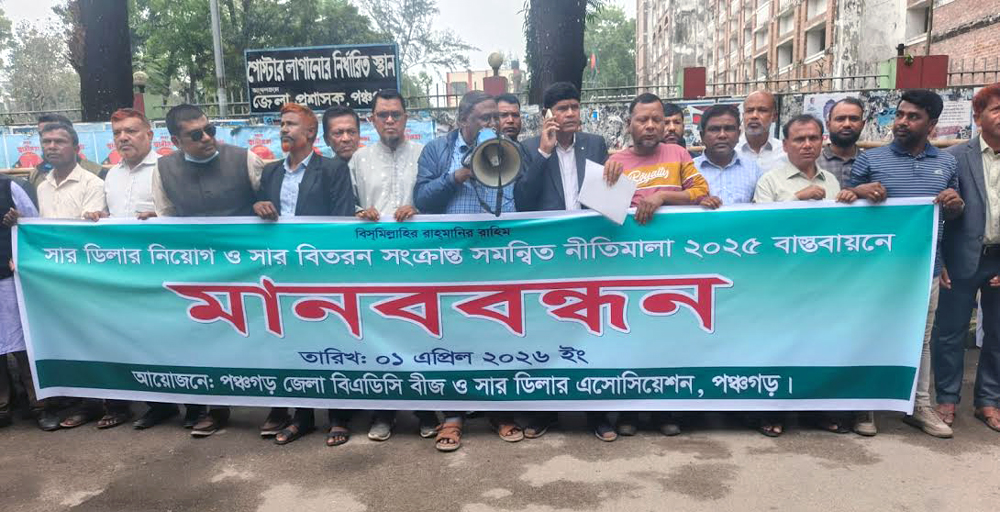 সার বিতরণ নীতিমালা দ্রুত বাস্তবায়নের দাবিতে পঞ্চগড়ে মানববন্ধন