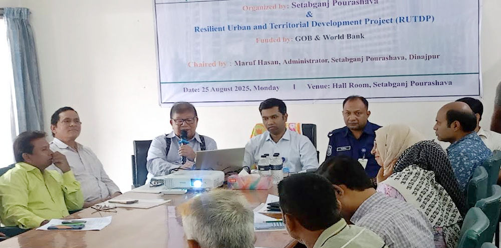 গণপ্রজাতন্ত্রী বাংলাদেশ সরকার এবং ইন্টারন্যাশনাল ডেভলপমেন্ট এসোসিয়েশন (আইডিএ) ওয়ার্ল্ড ব্যাংকের যৌথ অর্থায়নে রিলিজিয়েন্ট আরবান এন্ড টেরিটরিয়াল ডেভেলপমেন্ট প্রজেক্ট (আরইউটিডিপি) বাস্তবায়ানে সেতাবগঞ্জ পৌরসভায় টিএলসিসি সদস্যদের নিয়ে দিনব্যাপী প্রস্তুতিমূলক কর্মশালা অনুষ্ঠিত ।