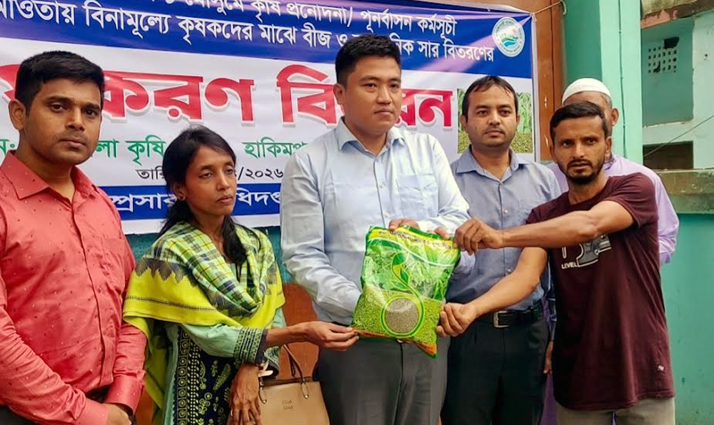 হাকিমপুরে বিনামূল্যে মুগডাল বীজ ও রাসায়নিক সার বিতরণ