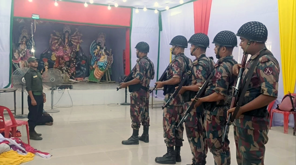 হিলি সীমান্তবর্তী পূজা মণ্ডপের নিরাপত্তায় বিজিবির সদস্যরা