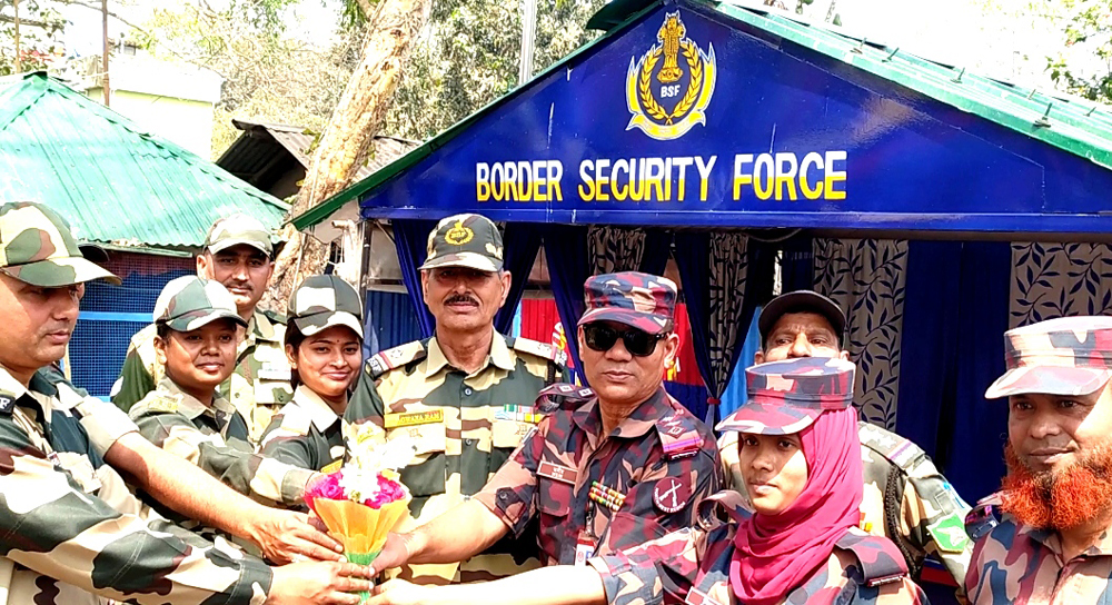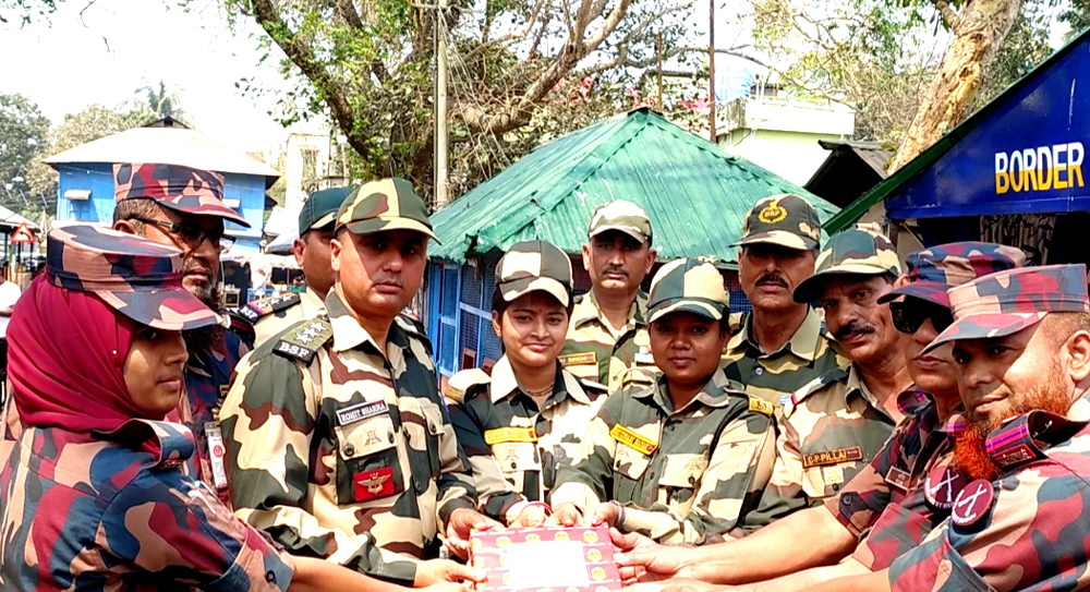 বিজিবি সিপি ক্যাম্পের কোম্পানি কমান্ডার অসীম মারাক ও ভারতের ৭৯ বিএসএফ ব্যাটালিয়নের এসি রহিত শর্মার হাতে মিষ্টি দিয়ে শুভেচ্ছা বিনিময় করেন। এসময় বিজিবি কে ফুলেল শুভেচছা জানান বিএসএফ।